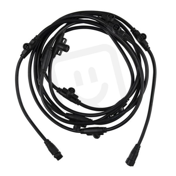 Propojovací kabel 5,5m s 10 konektory - 2x1,5mm2, IP67, M16 zásuvka bez matice + vidlice s převlečnou maticí + 10 x výstupní zásuvka bez matice každých 0,5m - černý