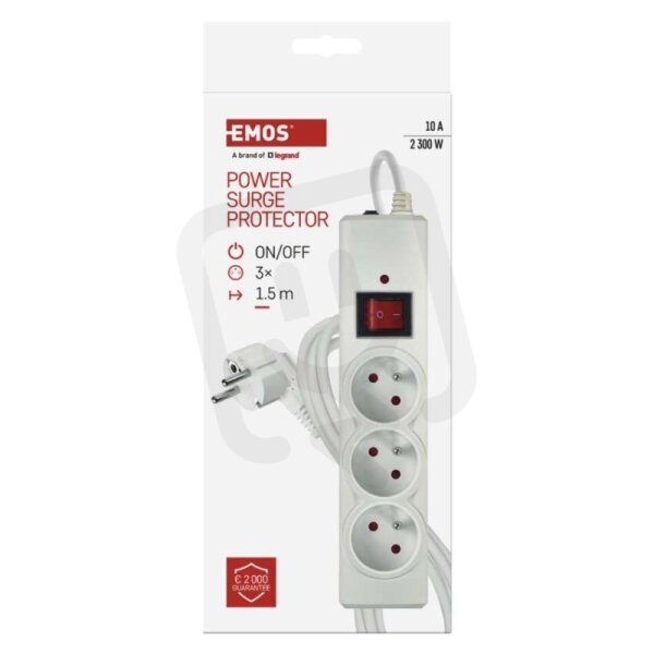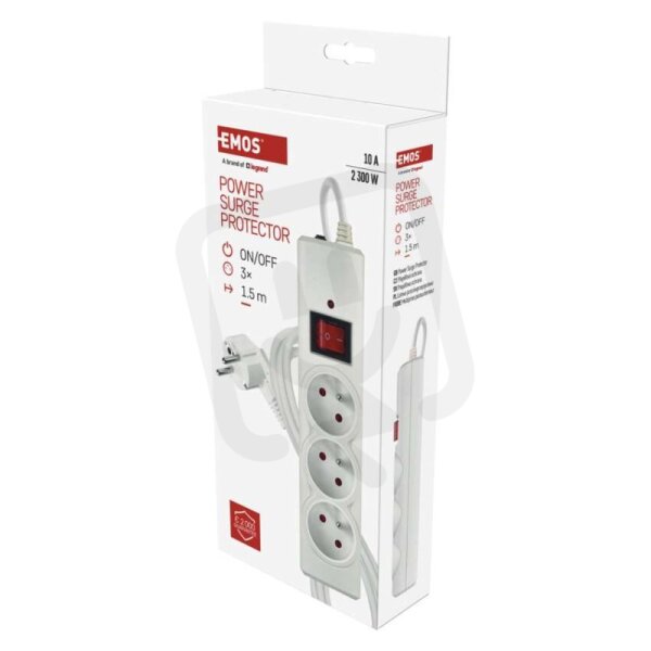 Přepěťová ochrana 3 zásuvky, 1,5 m, bílá EMOS P54013