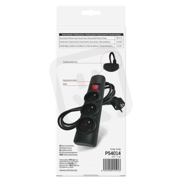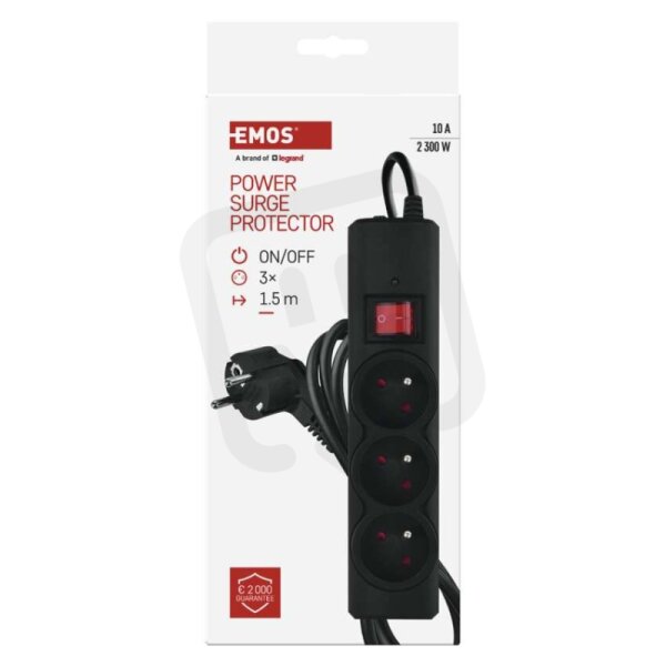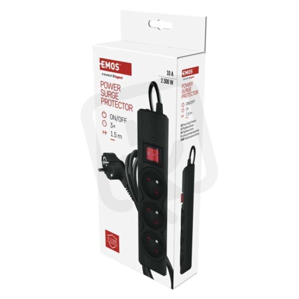 Přepěťová ochrana 3 zásuvky, 1,5 m, černá EMOS P54014