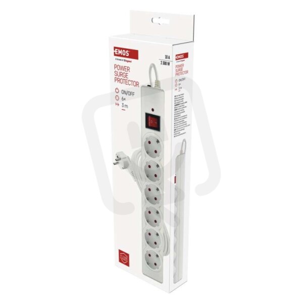Přepěťová ochrana 6 zásuvek, 3 m, bílá EMOS P54216