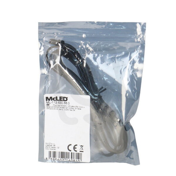 Připojovací konektor pro LED pásky šíře 10mm + kabel s 91505-MP konektorem (vidlice), 2m kabel AWG20 / 0,5mm2, UL2468, 12-24V, max. 3A, rozměry konektoru na pásek cca.: š. 12 x v. 5 x d. 18 mm. Černá barva.