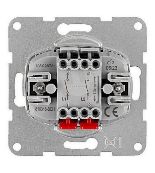 Přístroj spínače č.2, 2pólový, bezšroubové svorky SCHRACK EV100105--