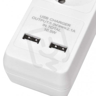 Max. zátěž 3 680 W. 2 x USB Σ 2,1 A max. (10,5 W).