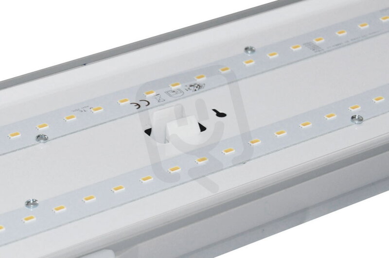 Svítidlo průmyslové s modulem LED 2x3200lm, spektrum 840, ABS základna s Al chladiči, s nerez. klipy, s regulací stmívání ovládané DALI protokolem, třífáz. průběž. montáž, s nouzovým modulem 3hod. s autotest