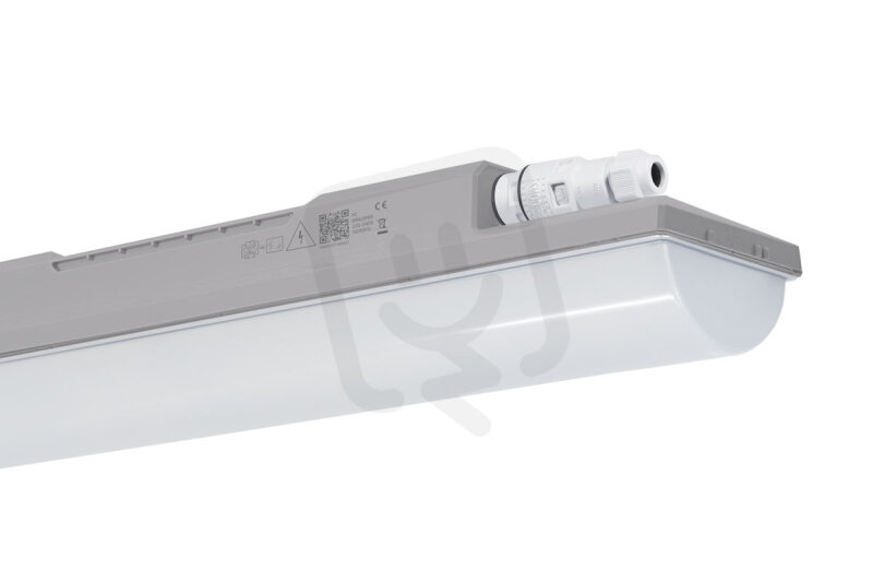 Plastové průmyslové LED svítidlo s vysokou chemickou odolností vhodné i do venkovních prostor, s difuzorem z translucentního akrylátu.
