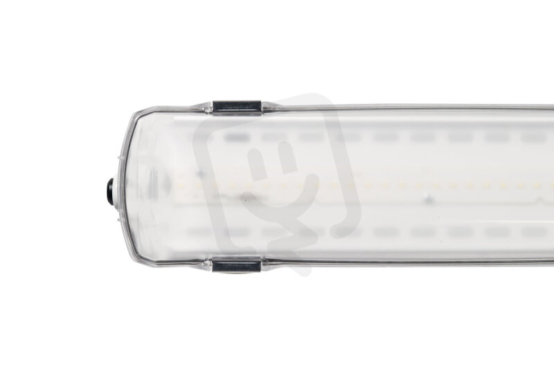 Svítidlo průmyslové s modulem LED 1x6400lm, spektrum 840, základna z čirého PC, s nerez. klipy, třífáz. průběž. montáž, s nouzovým modulem 3hod. s autotestem baterie