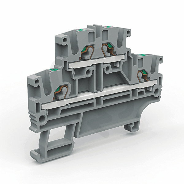 Pružinová řadová svorka push-in patrová EFD.2/GR šedá MOREK EFD200GR