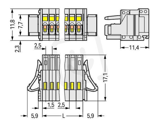 - Úhlové připojení kontaktu/vodiče: