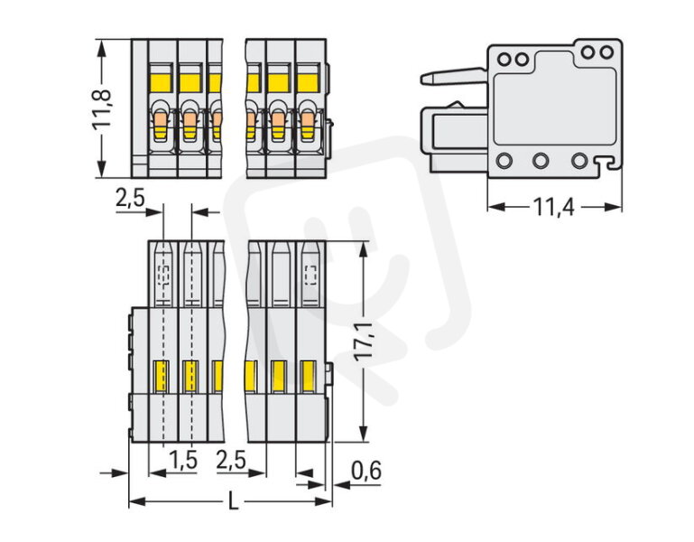 - Úhlové připojení kontaktu/vodiče: