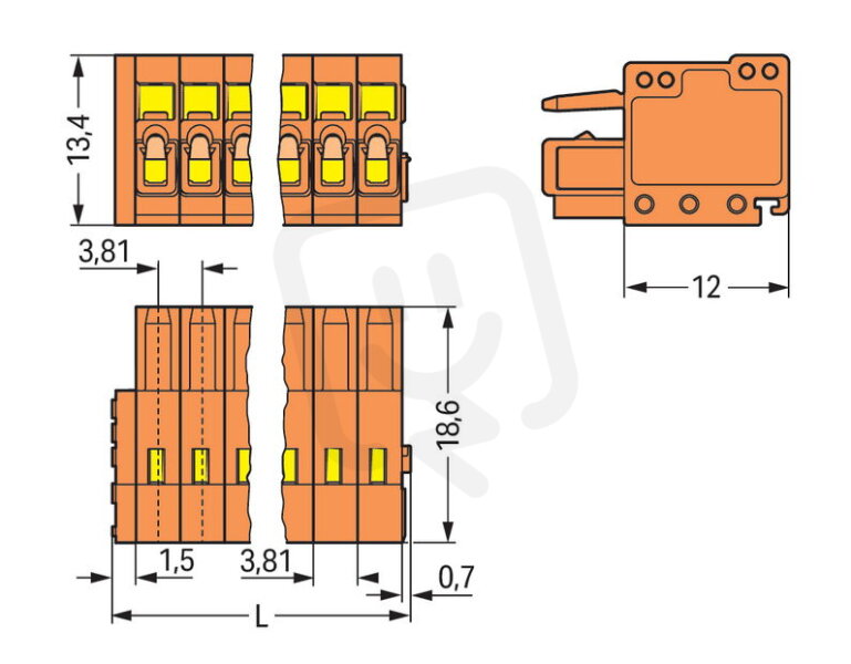 Pružinová svorka CAGE CLAMP 1,5mm2 oranžová 19pól. WAGO 734-219