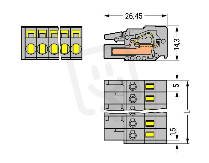 Pružinová svorka CAGE CLAMP 2,5mm2 šedá 15pól. WAGO 231-115/026-000/054-000