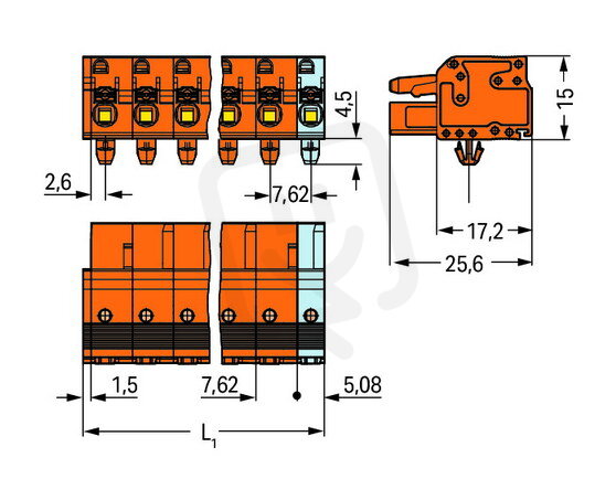 Pružinová svorka CAGE CLAMP oranžová 2,5mm2 5pól. oranžová WAGO 2231-705/008-000