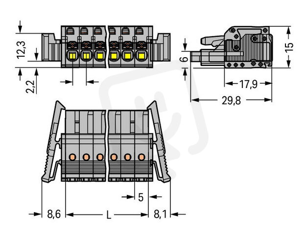 Pružinová svorka Push-in CAGE CLAMP šedá 2,5mm2 15pól. WAGO 2231-115/037-000