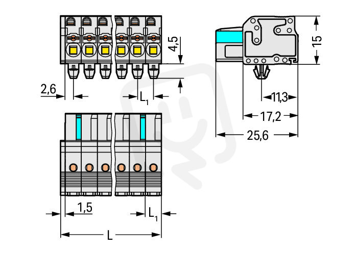 Pružinová svorka Push-in CAGE CLAMP sv.šedá 2,5mm2 15pól. WAGO 2721-115/008-000