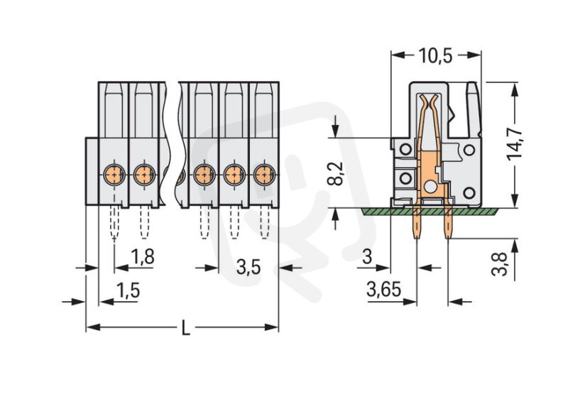 Pružinová svorkovnice THT rovná 3,5 mm šedá 14pól. WAGO 734-474