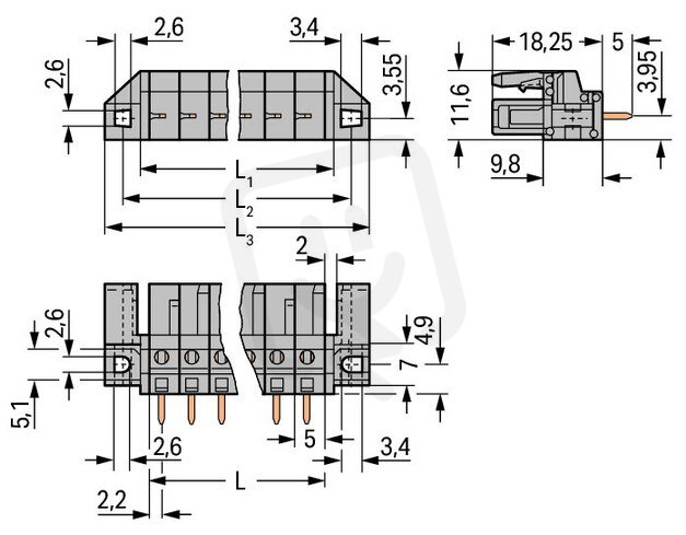 Pružinová svorkovnice THT rovná 5 mm šedá 19pól. WAGO 232-149/047-000