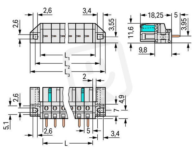 Pružinová svorkovnice THT rovná 5 mm šedá 7pól. WAGO 722-137/047-000