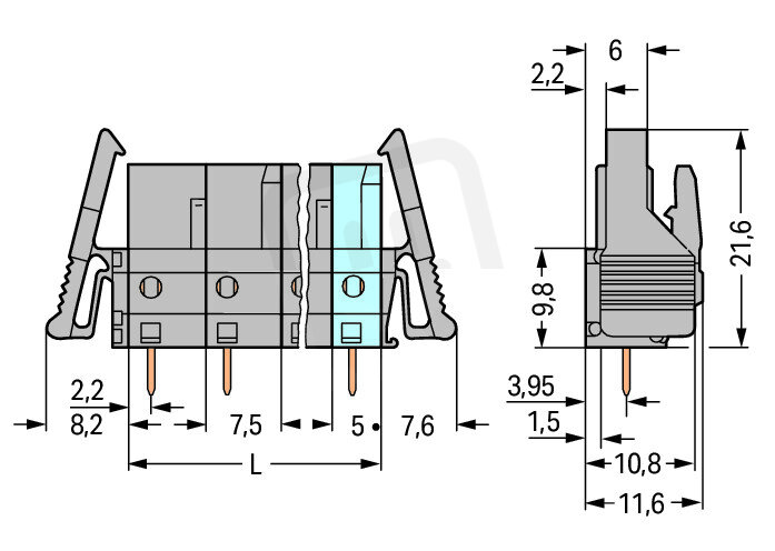 Pružinová svorkovnice THT rovná 7,5 mm šedá 6pól. WAGO 232-736/039-000
