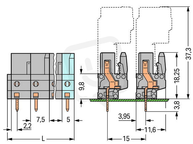 Pružinová svorkovnice THT rovná 7,5 mm šedá 9pól. WAGO 232-739/045-000