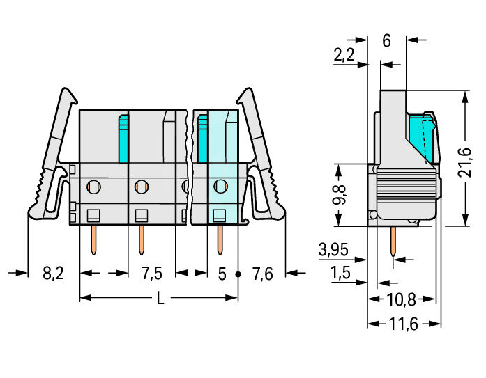 Pružinová svorkovnice THT rovná 7,5 mm šedá 9pól. WAGO 722-739/039-000