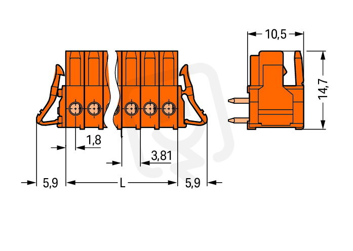 Pružinová svorkovnice THT úhlová 3,81 mm oranžová 2pól. WAGO 734-562/037-000