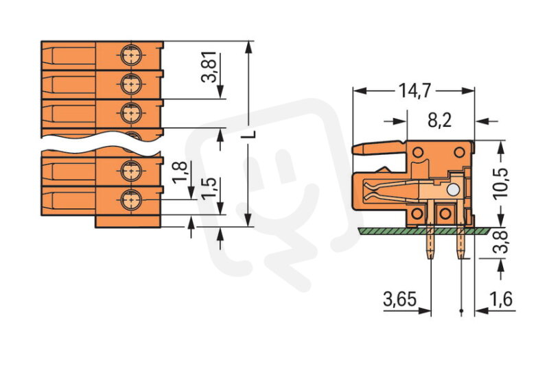 Pružinová svorkovnice THT úhlová 3,81 mm oranžová 5pól. WAGO 734-565