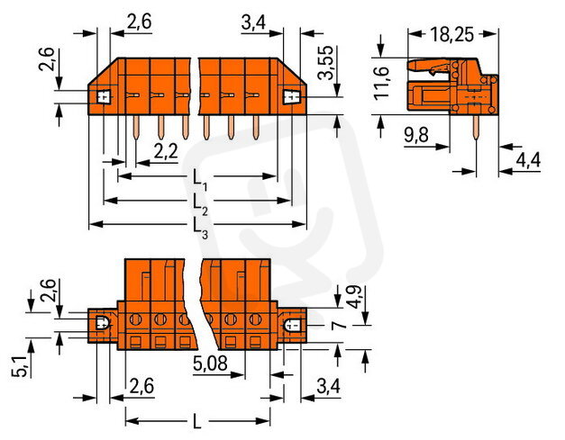 Pružinová svorkovnice THT úhlová 5,08 mm oranžová 20pól. WAGO 232-280/031-000