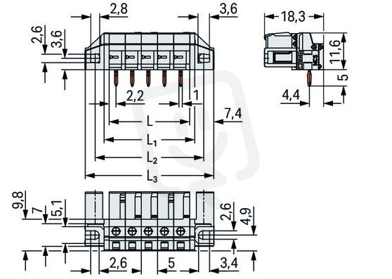 Pružinová svorkovnice THT úhlová 5 mm šedá 11pól. WAGO 722-241/047-000