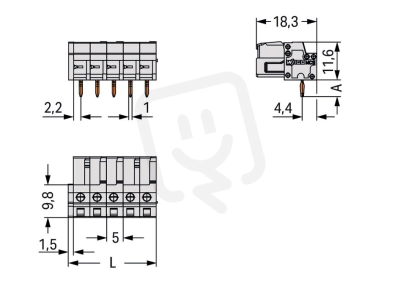 Pružinová svorkovnice THT úhlová 5 mm šedá 15pól. WAGO 722-245