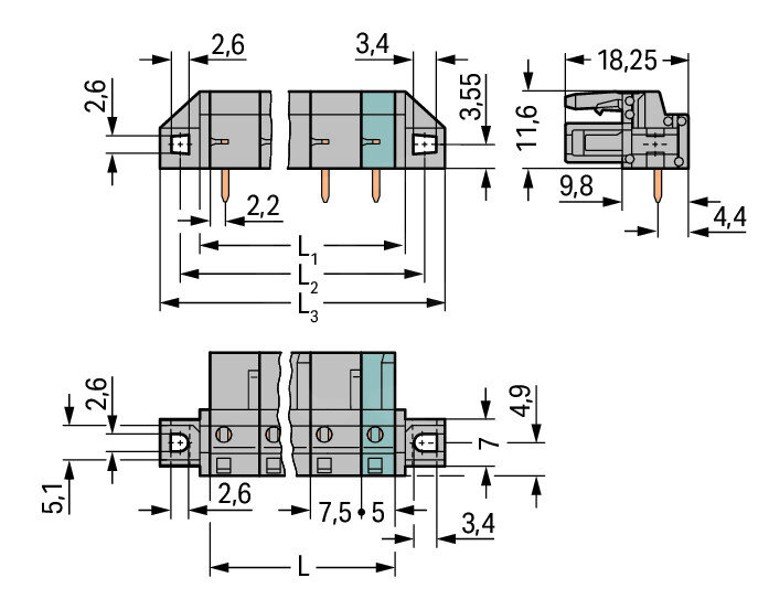 Pružinová svorkovnice THT úhlová 7,5 mm šedá 16pól. WAGO 232-846/031-000