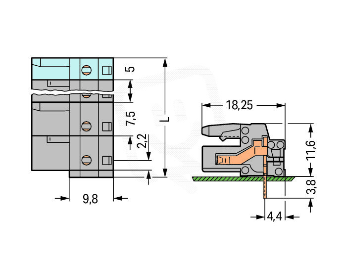 Pružinová svorkovnice THT úhlová 7,5 mm šedá 3pól. WAGO 232-833/045-000