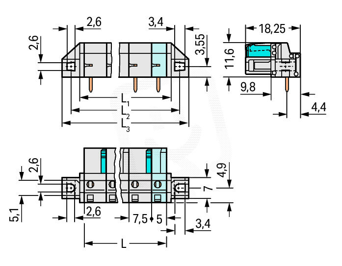 Pružinová svorkovnice THT úhlová 7,5 mm šedá 3pól. WAGO 722-833/031-000
