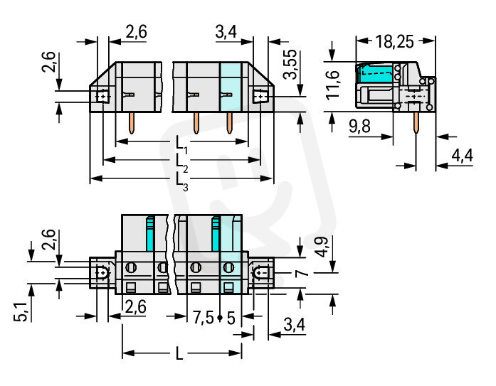 Pružinová svorkovnice THT úhlová 7,5 mm šedá 6pól. WAGO 722-836/031-000