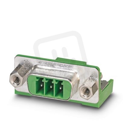 Zásuvka konektoru desky plošných spojů, jmenovitý průřez: 1,5 mm², barva: zelená, jmenovitý proud: 8 A, jmenovité napětí (III/2): 320 V, povrch kontaktů: Sn, typ kontaktu: Trn, počet potenciálů: 3, počet řad: 1, počet pólů: 3, počet přípojek: 3, řada výrobků: PSC 1,5/..-M, rozteč: 3,5 mm, montáž: Vlnové pájení, pin-layout: Střídavé zapojení W, délka pinu [P]: 3,5 mm, počet pájecích kolíků na každý potenciál: 1, systém zásuvných hlavic: PSC 1,5, Elektrické vlastnosti: stíněno, Orientace tvaru konektoru: Standardní, zajištění: Šroubový zámek, způsob upevnění: Závitová příruba, způsob balení: zabaleno v krabici