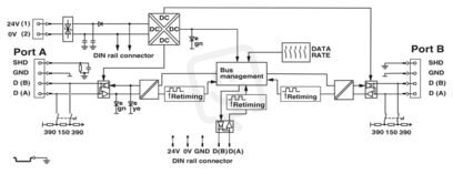 Modulární repeater pro oddělení potenciálů a zvýšení dosahu ve 2drátových systémech sběrnice RS-485 do 500 kBit/s, 4cestné oddělení, k montáži na lištu, napájení 24 V DC