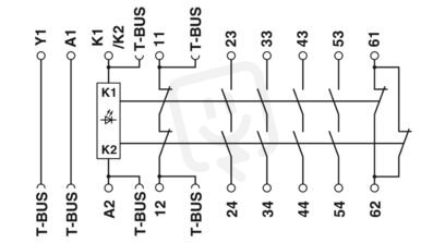 1kanálové rozšíření kontaktů s rozhraním TBUS, 4 spínací kontakty, 1 rozpojovací kontakt, 1 proudový obvod potvrzení, bez zpoždění, kat. 4, PL e podle EN ISO 13849, šířka: 22,5 mm, výměnné šroubové svornice