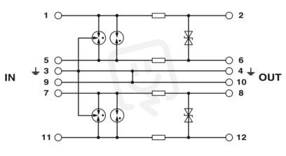 Ochranné konektory PT s jističem pro dva 2vodičové signální obvody Ex-i provozované bez zemního potenciálu. Jmenovité napětí: 24 V DC, způsobilé pro HART.