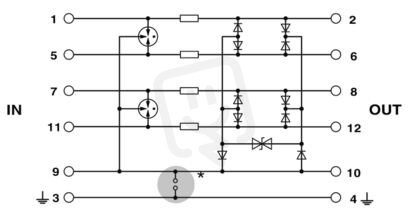 Ochranná hlavice PT s VF ochranným obvodem pro 4 žíly přenosu signálu. Jmenovité napětí: 12 V DC