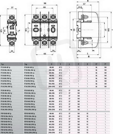 PTI 00 P00-P00 3p s krytom kontaktov