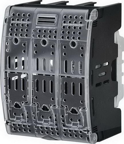 Plastový pojistkový spodek s výklopnými kryty PTIP 00 M8-2M6 S, 3p, In = 160A, Un = 690V AC, pro pojistky NH00 (000), montáž na panel / DIN lištu