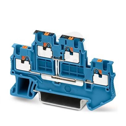 Dvoupatrová svornice, s propojením potenciálu, jmenovité napětí: 500 V, jmenovitý proud: 16 A, typ připojení: Svorky Push-in, 1. a 2. patro, Jmenovitý průřez: 1,5 mm², průřez: 0,14 mm² - 1,5 mm², způsob montáže: NS 35/7,5, NS 35/15, barva: modrá