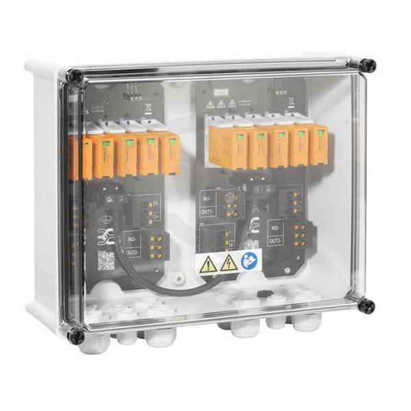 Spojovací skříně (fotovoltaika), 1000 V, 4 MPPT´s, 2 vstupy / 1 výstup na MPPT, Přepěťová ochrana II, Kabelová průchodka Propojovací skříň pro fotovoltaické aplikace