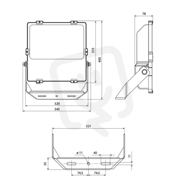 Reflektorové LED svítidlo Delta 200, výkon 200W, teplá bílá 3000K, 25600lm, CRI80, vyzařovací úhel 15°, s optikou, rozměry: 400×315×75mm, IP66, IK08, provozní teplota: -30°C - +50°C. Záruka 5 let.