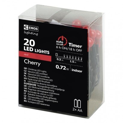 LED vánoční řetěz - kuličky, 2xAA, 1,5m, červená, časovač