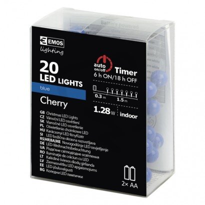 LED vánoční řetěz - kuličky, 2xAA, 1,5m, modrá, časovač