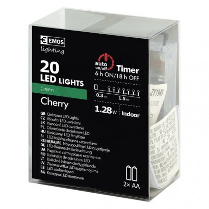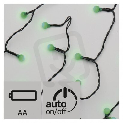 LED vánoční řetěz - kuličky, 2xAA, 1,5m, zelená, časovač