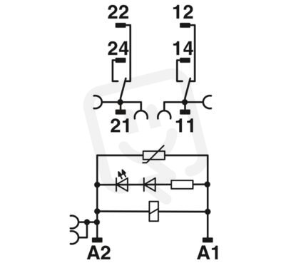 Předmontovaný reléový modul s připojením push-in, sestávající z: patice relé, vícevrstvého kontaktního relé, výměnného zobrazovacího odrušovacího modulu a svornicové základny. Provedení kontaktů: 2 přepínače. Vstupní napětí: 120 V AC