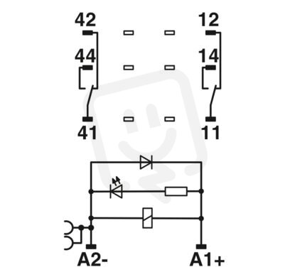 Předmontovaný reléový modul s připojením push-in, sestávající z patice relé, relé s výkonovými kontakty a svornicové základy. Provedení kontaktů: 2 přepínače. Vstupní napětí: 24 V DC