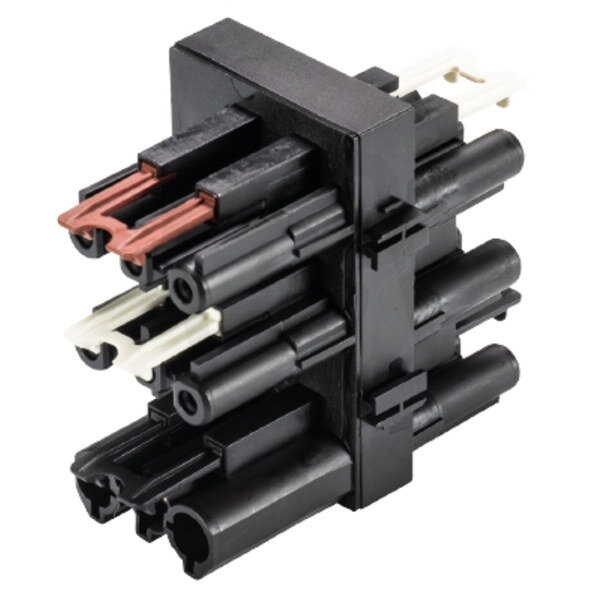 rozvodný blok 1/5, 3-pól, vypínač 1/2, gesis, černý/ hnědý WIELAND 92.030.0353.1