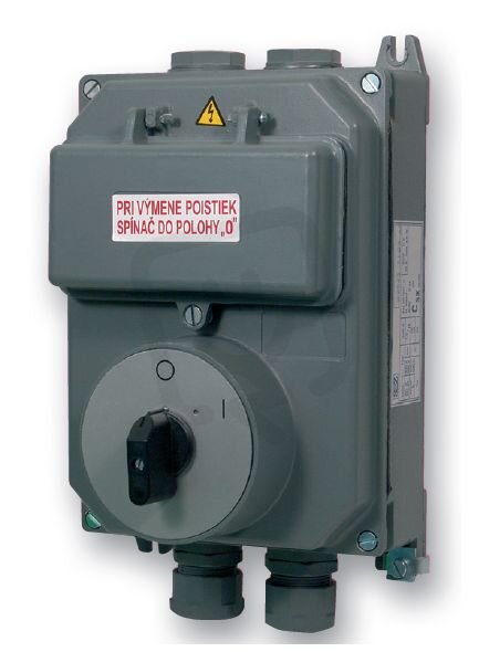 Vačkový spínač v hliníhové skříni s pojistkami, reverzační přepínač 16A, 1-0-2